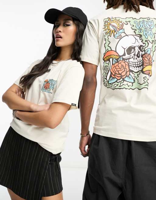 Vans - T-shirt unisex color crema con stampa "Zoned Out" sul retro