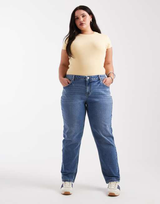 Vero Moda Curve - Jeans dritti elasticizzati in denim blu medio