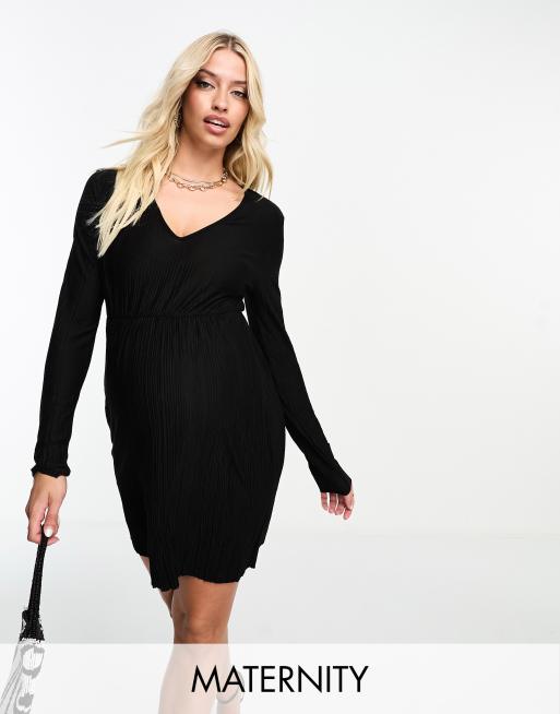 Vero Moda Maternity - Vestito corto a maniche lunghe nero plissé
