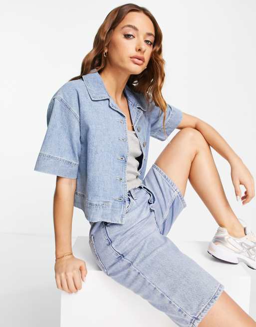 Vero Moda - Aware - Camicia di jeans corta lavaggio medio blu