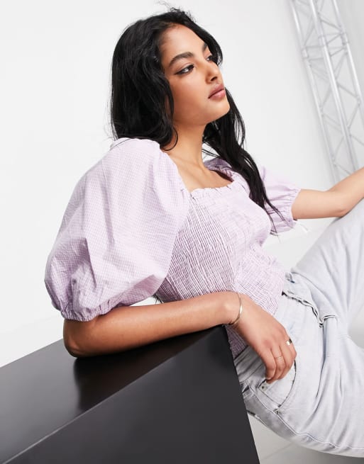 Vero Moda - Blusa con maniche a sbuffo e pantaloni ampi a quadri lilla