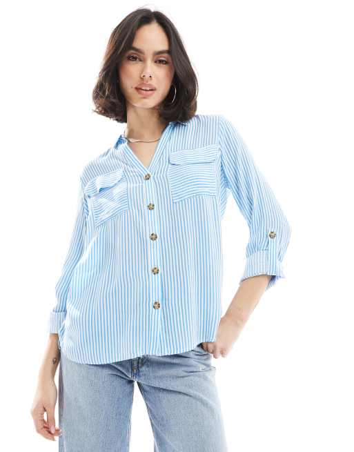 Vero Moda - Camicia blu e bianca a righe con bottoni e tasche