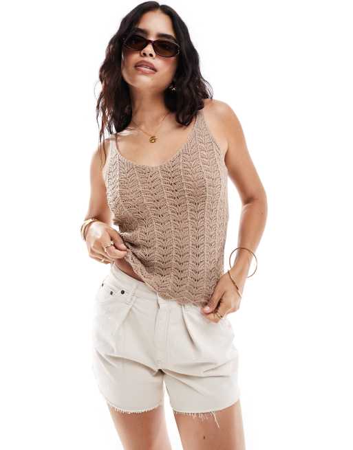 Vero Moda - Canotta in maglia beige testurizzata con scollo a V
