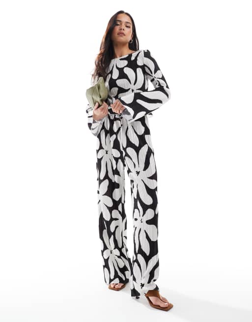 Vero Moda - Coordinato con stampa a fiori monocromatica con top e pantaloni plissé