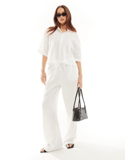 Vero Moda - Coordinato in lino bianco con camicia a maniche corte squadrata e pantaloni a fondo ampio