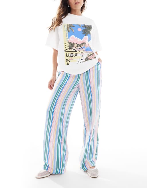 Vero Moda - Easy - Pantaloni a fondo ampio allacciati in vita con motivo a righe effetto caramella