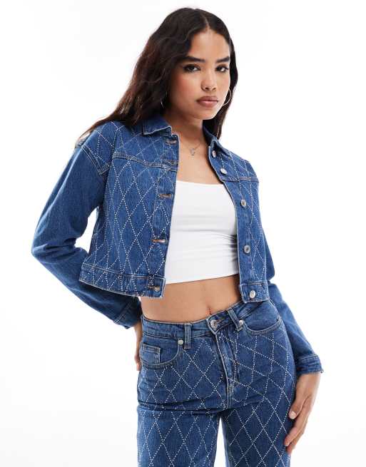 Vero Moda - Giacca di jeans blu medio con strass in coordinato