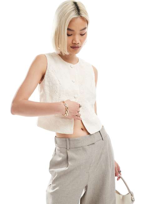 Vero Moda - Gilet color crema con ricami
