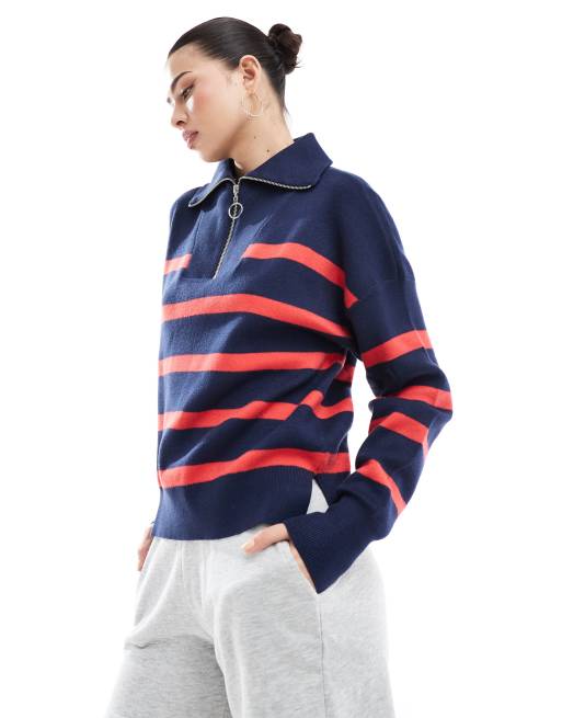 Vero Moda - Maglione blu navy e rosso a righe con zip