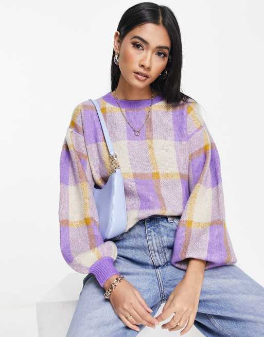 Vero Moda - Maglione con maniche a sbuffo viola a quadri