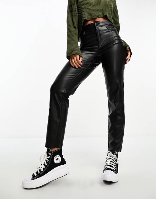 Vero Moda - Pantaloni a sigaretta in pelle sintetica neri