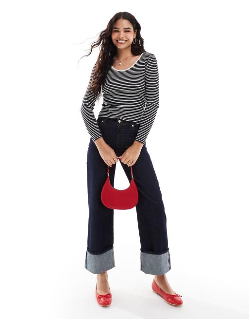 Vero Moda - T-shirt a maniche lunghe double-face nera e bianca a righe