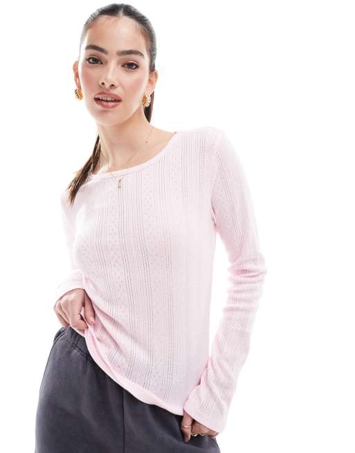 Vero Moda - Top a maniche lunghe rosa confetto traforato