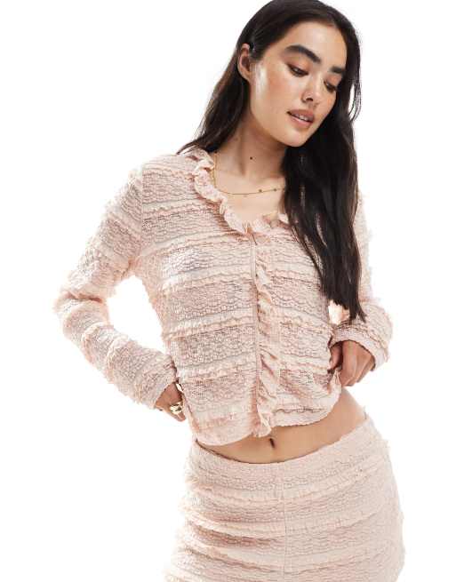Vero Moda - Top a maniche lunghe rosa in pizzo con volant in coordinato
