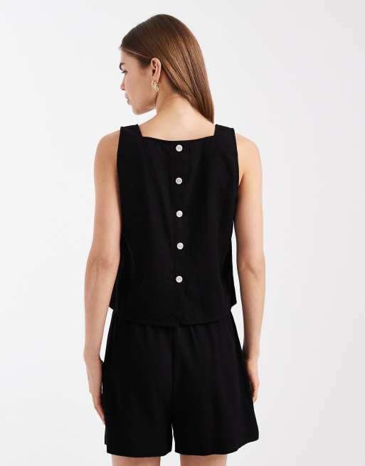 Vero Moda - Top senza maniche nero con bottoni sul retro in coordinato