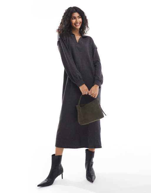 Vero Moda - Vestito alla caviglia morbidissimo nero mélange con colletto stile polo