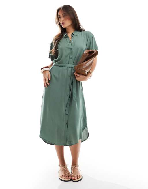 Vero Moda - Vestito camicia midi verde con cintura annodata