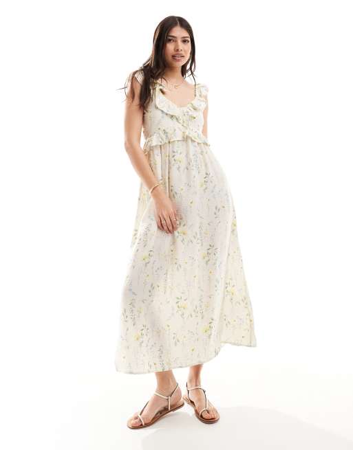 Vero Moda - Vestito lungo a fiori con scollo a V e volant