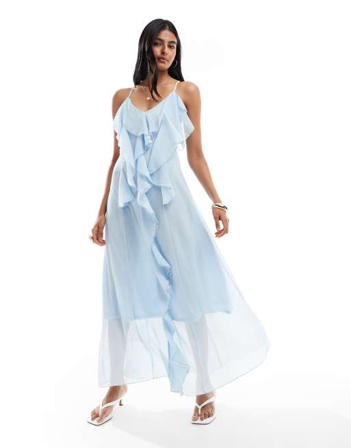 Vero Moda - Vestito lungo bohémien stile canottiera blu con volant