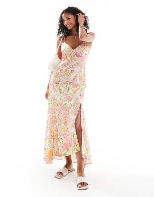 Vero Moda - Vestito lungo in raso con stampa patchwork a fiori con spalline sottili e spacco sulla coscia