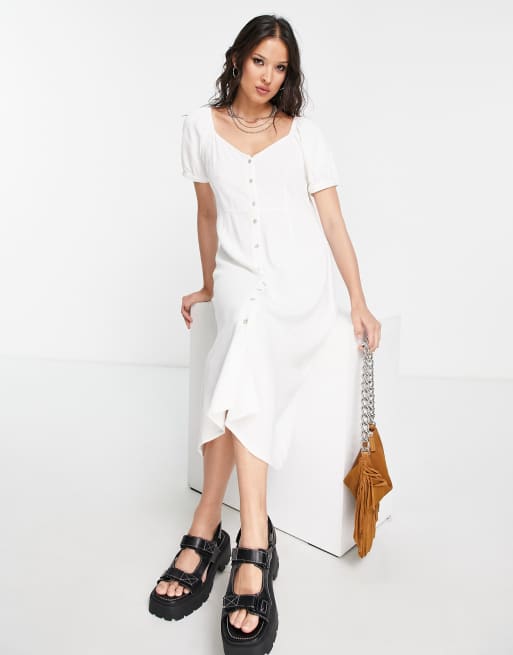 Vero Moda - Vestito midi bianco con scollo a V e maniche corte a sbuffo