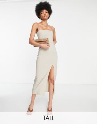 Vesper Tall - Vestito fasciante midi con spalline sottili e spacco sulla coscia, color écru