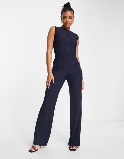 Vesper - Tuta jumpsuit accollata con fondo ampio blu navy