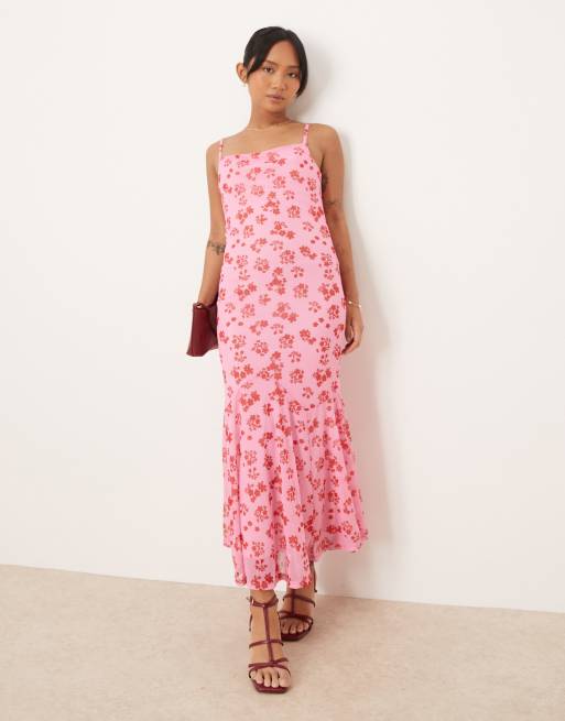 Vila Petite - Vestito lungo con spalline sottili in rete rosa a fiori con scollo squadrato