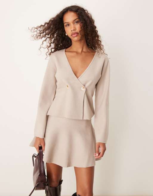 Vila - Cardigan avvolgente in maglia strutturata neutro mélange in coordinato