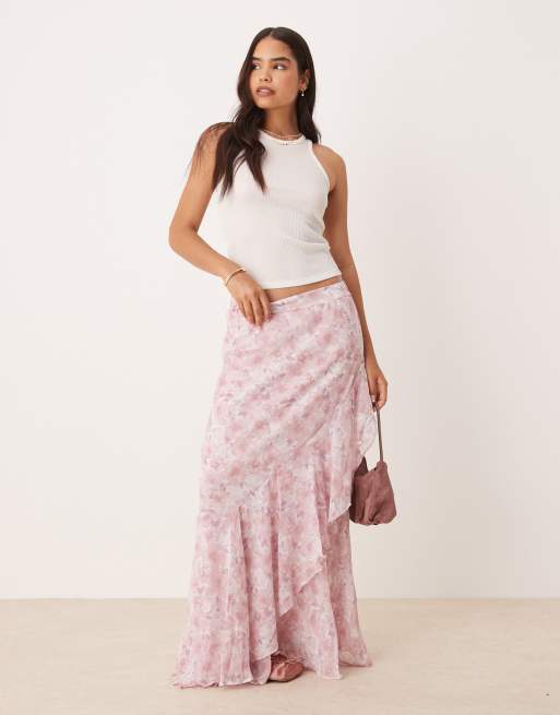 Vila - Gonna bohémien in chiffon con stampa a fiori e volant