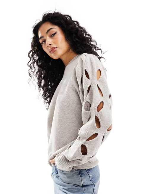 Vila - Maglione crema con cut-out sulle maniche