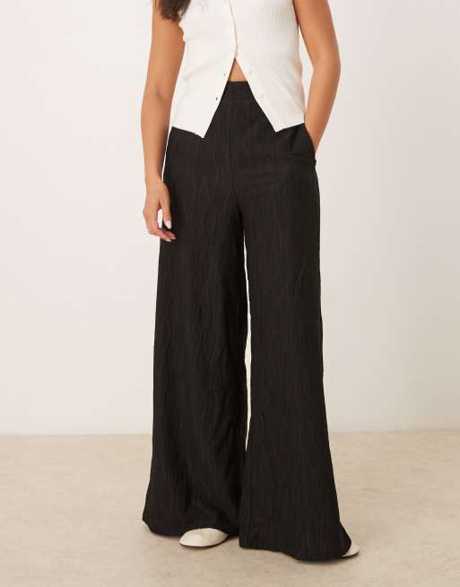 VILA - Pantaloni testurizzati neri a fondo ampio