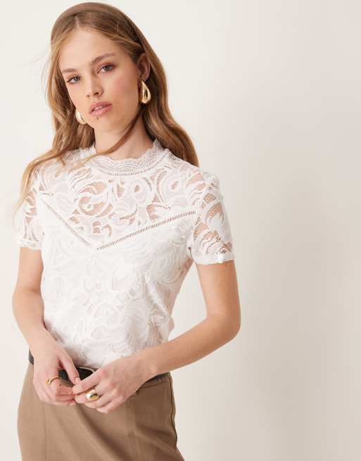 Vila - Top accollato in pizzo bianco