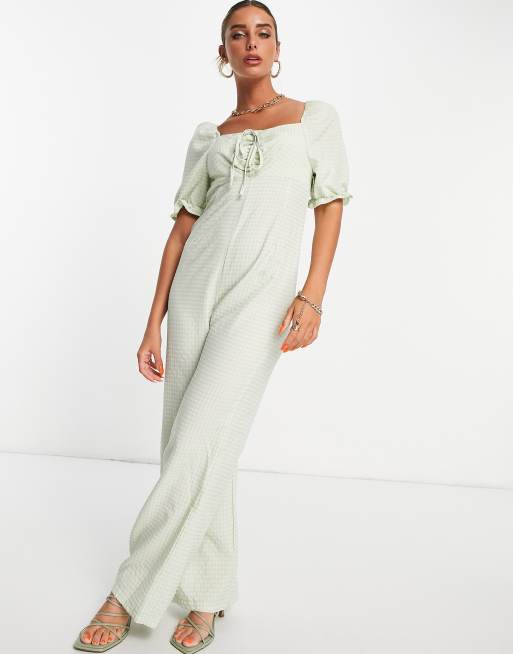Vila - Tuta jumpsuit testurizzata verde a quadretti con laccetti