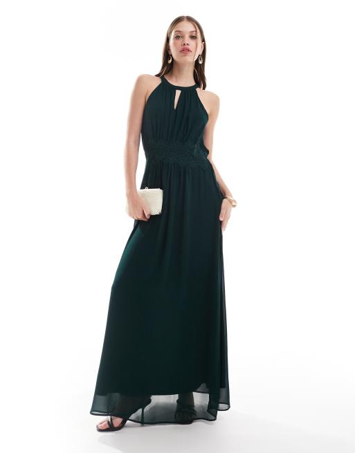 Vila - Vestito lungo da damigella allacciato al collo verde scuro