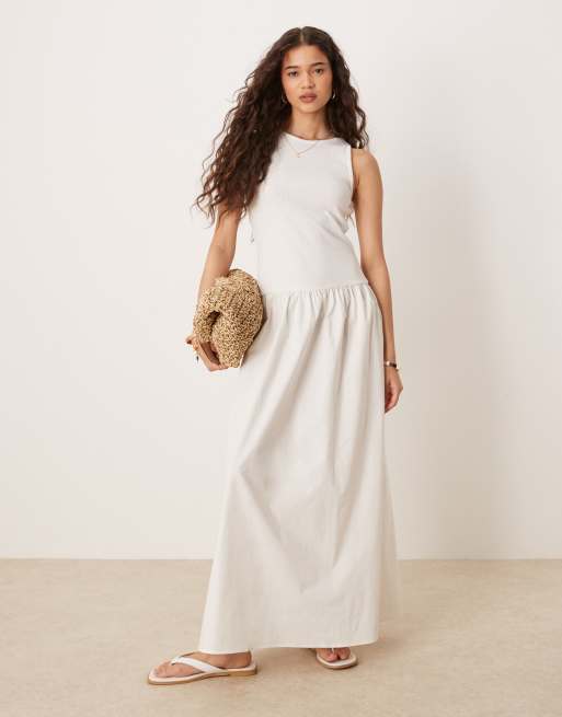 Vila - Vestito lungo smanicato con gonna in popeline color panna