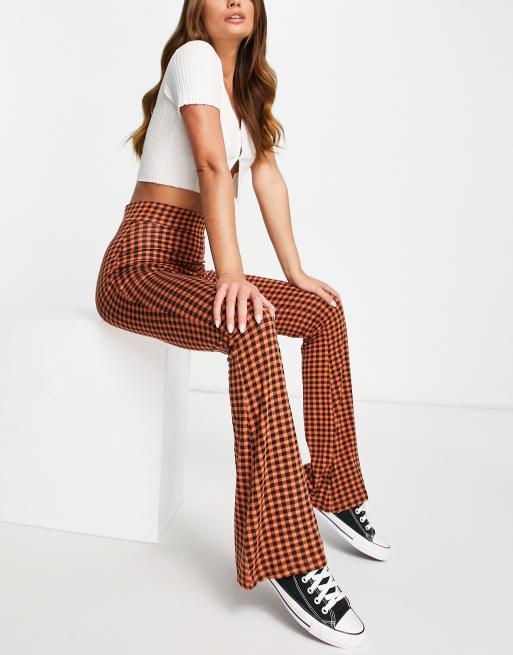 Violet Romance - Pantaloni in jersey a fondo ampio con motivo a quadri color ruggine