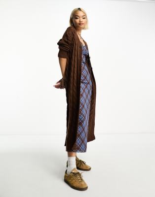 Violet Romance - Vestito cardigan lungo in maglia a trecce marrone cioccolato