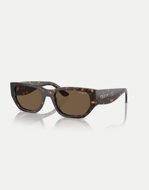 Vogue - Occhiali da sole rettangolari color Havana scuro con lenti marroni