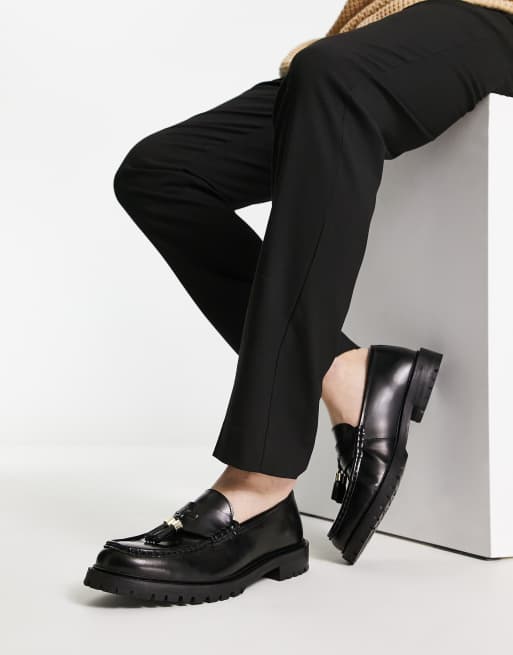 Walk London - Campus - Mocassini con nappe in pelle nera