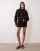 Wanderdoll - Alix - Coordinato in denim color moka con giacca stretta in vita con cuciture a vista e minigonna