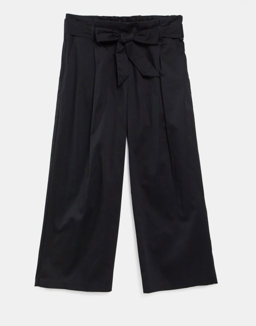 Warehouse - Pantaloni in cotone a vita alta neri