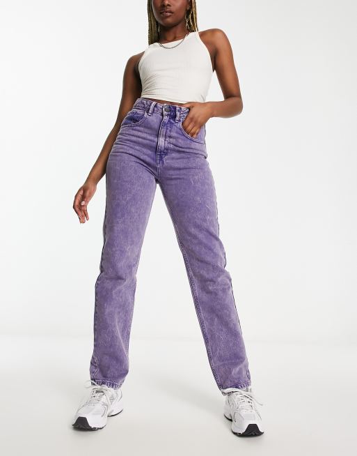 Waven - Jeans dritti a vita super alta lavaggio acido viola in coordinato
