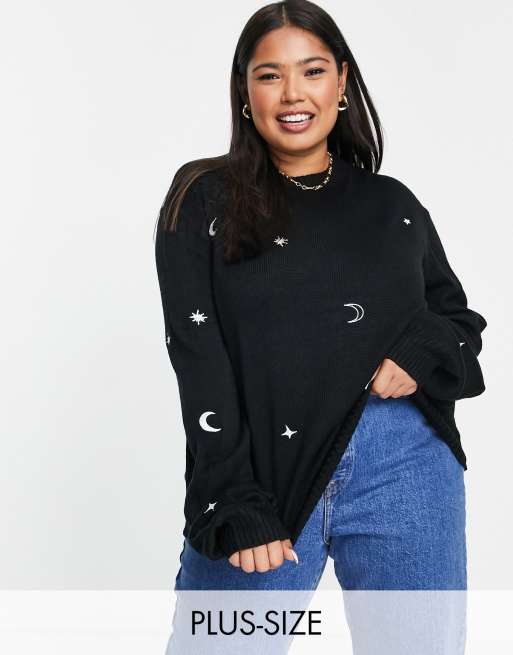 Wednesday's Girl Curve - Maglione con ricamo con astri