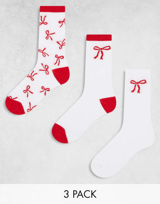 Wednesday's Girl - Confezione multipack di calzini rossi e bianchi con stampa di fiocchetti