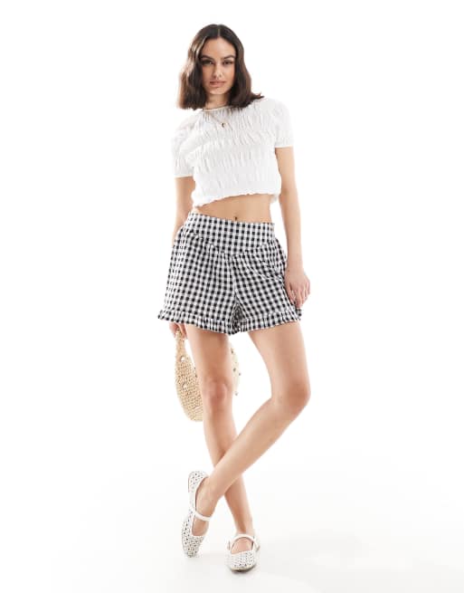 Wednesday's Girl - Pantaloncini neri a quadretti con volant sui bordi