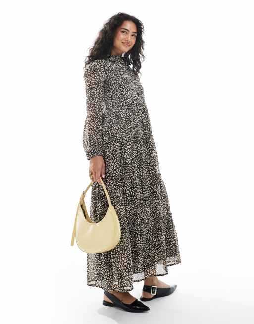 Wednesday's Girl - Vestito al polpaccio marrone a balze con stampa leopardata