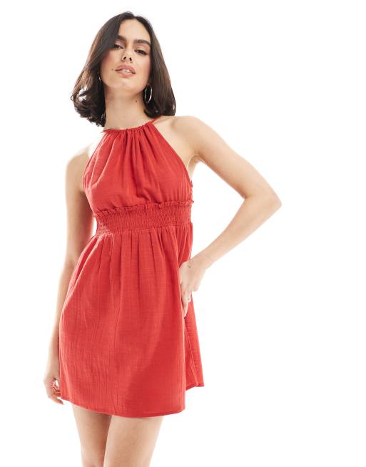 Wednesday's Girl - Vestito corto con spalline sottili allacciato al collo rosso acceso