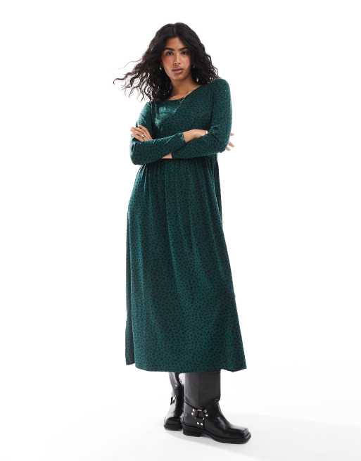 Wednesday's Girl - Vestito midi a maniche lunghe verde bosco con stampa a macchie