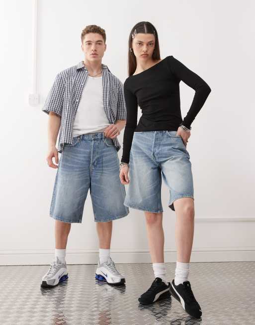 Weekday - Astro - Pantaloncini di jeans unisex ampi blu